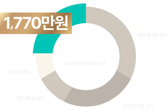 18평 매장 오픈 첫 달 매출 7000만원 달성 2025년 8월 22일 ~ 9월 21일 기준